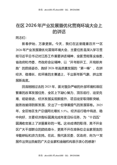 在区2026年产业发展暨优化营商环境大会上的讲话.docx