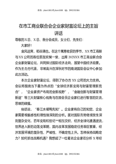 在市工商业联合会企业家财富论坛上的主旨讲话.docx