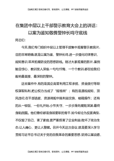 在集团中层以上干部警示教育大会上的讲话:以案为鉴知敬畏警钟长鸣守底线.docx