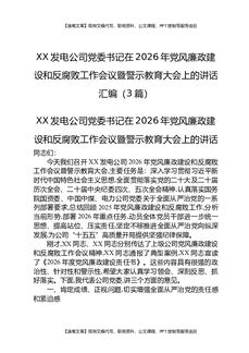 XX发电公司党委书记在2026年党风廉政建设和反腐败工作会议暨警示教育大会上的讲话汇编(3篇).docx