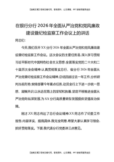 在银行分行2026年全面从严治党和党风廉政建设暨纪检监察工作会议上的讲话.docx