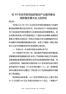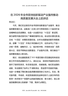 在2026年全市坚持创新驱动产业强市推动高质量发展大会上的讲话.docx