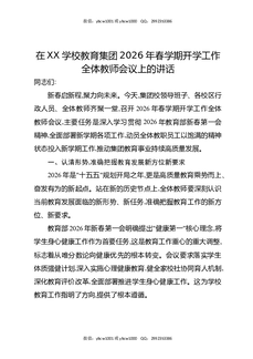 在XX学校教育集团2026年春学期开学工作全体教师会议上的讲话.docx