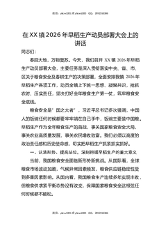 在XX镇2026年早稻生产动员部署大会上的讲话.docx