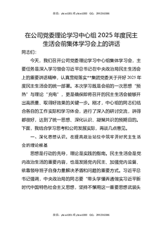 在公司党委理论学习中心组2025年度民主生活会前集体学习会上的讲话.docx