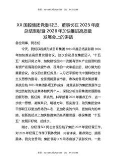 XX国控集团党委书记,董事长在2025年度总结表彰暨2026年加快推进高质量发展会上的讲话.docx