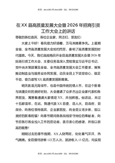在XX县高质量发展大会暨2026年招商引资工作大会上的讲话.docx