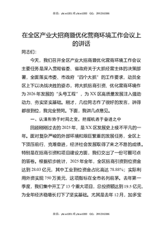 在全区产业大招商暨优化营商环境工作会议上的讲话.docx