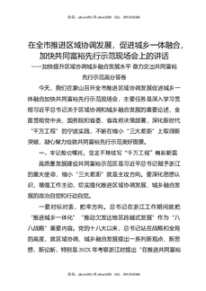 在全市推进区域协调发展,促进城乡一体融合,加快共同富裕先行示范现场会上的讲话.docx