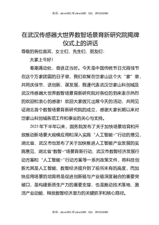 在武汉传感器大世界数智场景育新研究院揭牌仪式上的讲话.docx
