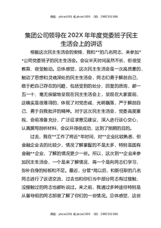 集团公司领导在202X年年度党委班子民主生活会上的讲话.docx