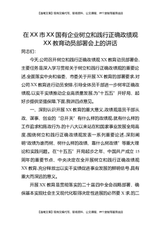 在XX市XX国有企业树立和践行正确Z绩观XX教育动员部署会上的讲话.docx