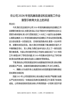 在公司2026年党风廉政建设和反腐败工作会暨警示教育大会上的讲话.docx