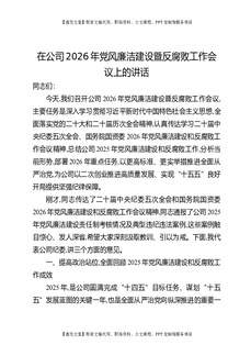 在公司2026年党风廉洁建设暨反腐败工作会议上的讲话.docx