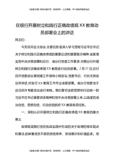 在银行开展树立和践行正确Z绩观XX教育动员部署会上的讲话.docx