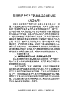 领导班子2025年民主生活会主持讲话(集团公司).docx