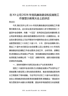 在XX公司2026年党风廉政建设和反腐败工作暨警示教育大会上的讲话.docx