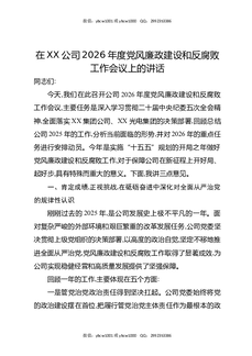 在XX公司2026年度党风廉政建设和反腐败工作会议上的讲话.docx