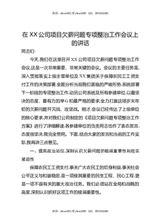 在XX公司项目欠薪问题专项整治工作会议上的讲话.docx