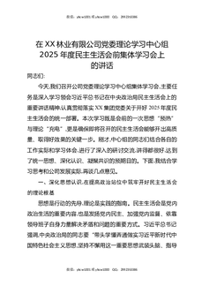 在XX林业有限公司党委理论学习中心组2025年度民主生活会前集体学习会上的讲话.docx