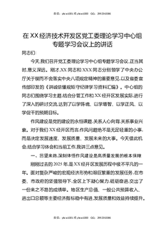 在XX经济技术开发区党工委理论学习中心组专题学习会议上的讲话.docx