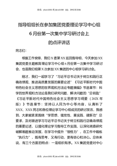 指导组组长在参加集团党委理论学习中心组6月份第一次集中学习研讨会上的点评讲话.docx