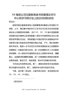 XX集团公司主题教育读书班暨理论学习中心组学习研讨会上的主持词和讲话.docx