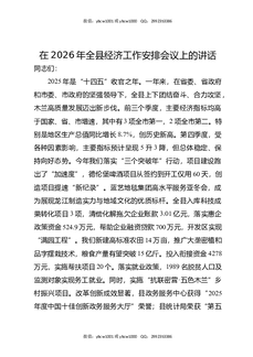 在2026年全县经济工作安排会议上的讲话.docx