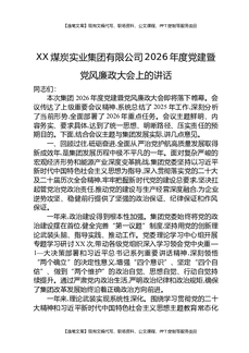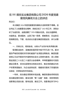 XX煤炭实业集团有限公司2026年度党建暨党风廉政大会上的讲话.docx