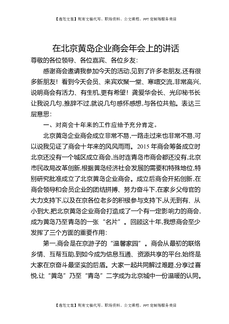 在北京黄岛企业商会年会上的讲话.docx