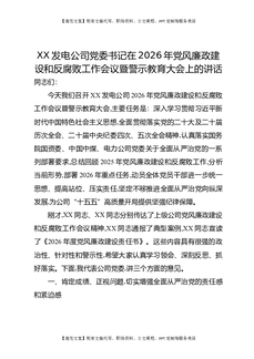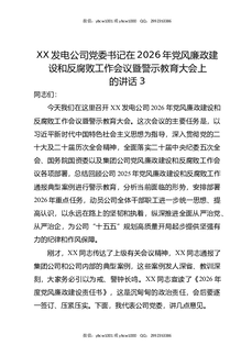 XX发电公司党委书记在2026年党风廉政建设和反腐败工作会议暨警示教育大会上的讲话3.docx