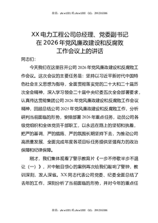 XX电力工程公司总经理,党委副书记在2026年党风廉政建设和反腐败工作会议上的讲话.docx