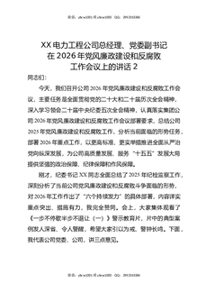 XX电力工程公司总经理,党委副书记在2026年党风廉政建设和反腐败工作会议上的讲话2.docx