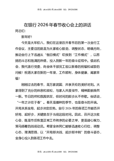 在银行2026年春节收心会上的讲话.docx