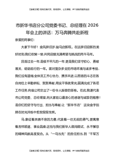 市新华书店分公司党委书记、总经理在2026年会上的讲话:万马奔腾共赴新程.docx