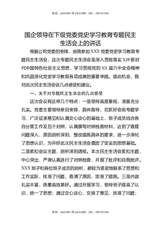 国企领导在下级党委党史XX教育专题民主生活会上的讲话.docx
