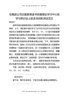 在集团公司主题教育读书班暨理论学习中心组研讨会主持词和讲话范文.docx