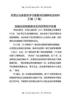 民营企业家委员学习重要讲话精神发言材料汇编(7篇).docx