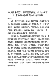 在集团中层以上干部警示教育大会上的讲话:以案为鉴知敬畏,警钟长鸣守底线.docx