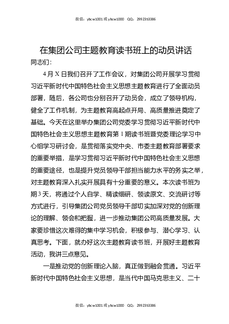 在集团公司主题教育读书班上的动员讲话.docx