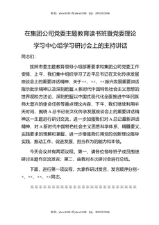 在集团公司党委主题教育读书班暨党委理论学习中心组学习研讨会上的主持讲话.docx