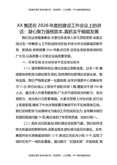 XX集团在2026年度党的建设工作会议上的讲话:凝心聚力强根固本,真抓实干赋能发展.docx