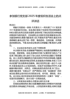 参加银行党支部2025年度组织生活会上的点评讲话.docx
