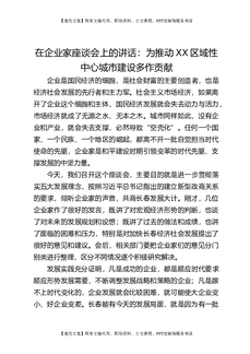 在企业家座谈会上的讲话:为推动XX区域性中心城市建设多作贡献.doc