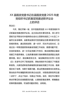 XX县国资党委书记在县国资党委2025年度党组织书记抓基层党建述职评议会上的讲话.docx
