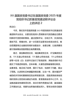 XX县国资党委书记在县国资党委2025年度党组织书记抓基层党建述职评议会上的讲话2.docx