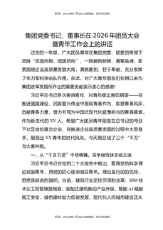 集团党委书记,董事长在2026年团员大会暨青年工作会上的讲话.docx