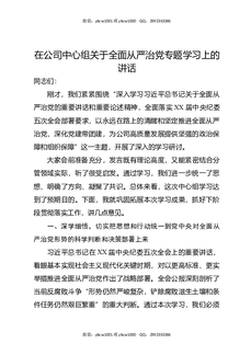 在公司中心组关于全面从严治党专题学习上的讲话.docx