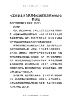 市工商联主席在民营企业高质量发展座谈会上的讲话.docx