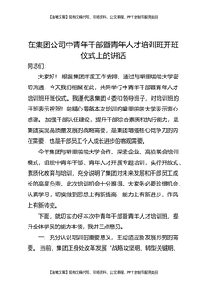 在集团公司中青年干部暨青年人才培训班开班仪式上的讲话.docx